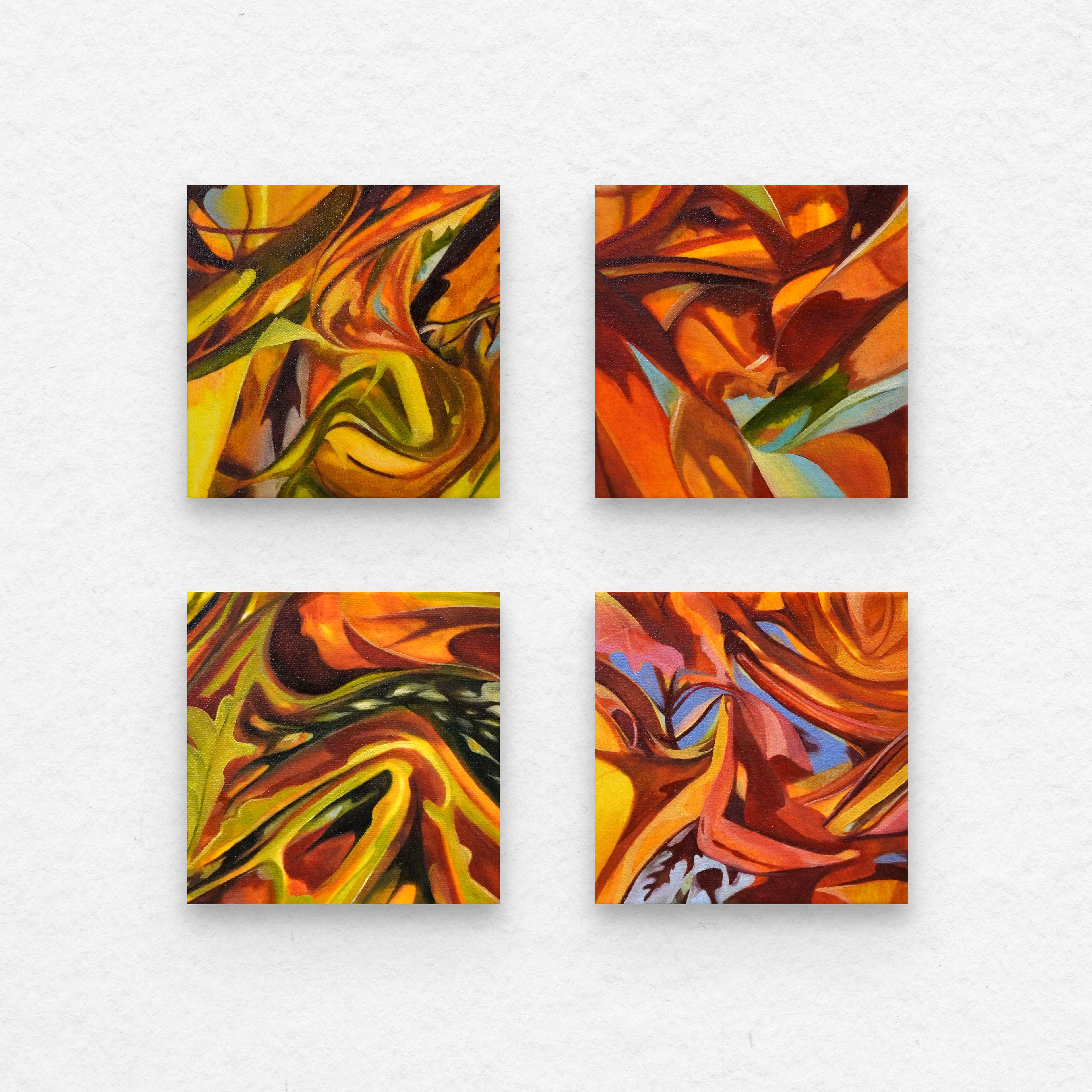 This series of small 6 x 6 inch paintings captures fleeting moments of inspiration found in the transitions between seasons. Subtle shifts in light, air, and atmosphere quietly shape our sense of time and place, influencing memory, perception, and emotional grounding.